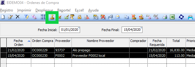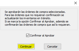 También, es posible aprobar varias órdenes en la tabla de órdenes, marcando varias y presionando un botón similar.